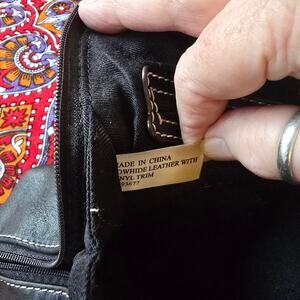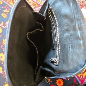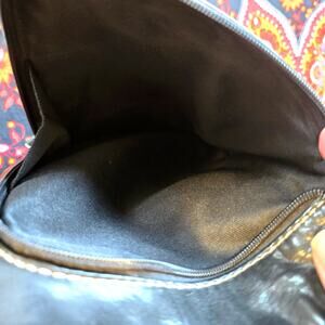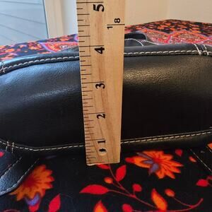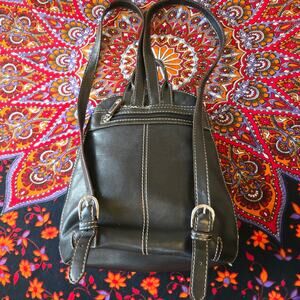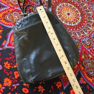 St. Johns Bay Leather handbag with backpack straps in black. Super handy bag you can hand carry or swing it around to your back for hands free travel. Clean inside, in good condition. See pics for sizing and other details on condition.