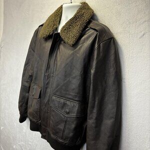 St Johns Bay Leather Sherpa Collar Aviator Jacket Mens Large Black Bomber Coat