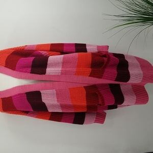 St John's Bay Stunning Multicolored Long Cardigan Duster Sweater with Open Front & Two Front Pockets. Substantial Weight. Beautiful Tones of Pink, Burgundy, Red & Orange Make This A Show Stopper! Very Cozy Knit. Fits Size 2XLP, But Also Fits Smaller Person As An Oversized Look. A Beautiful Pop of Color That Will Transition Through Fall, Winter & Spring!