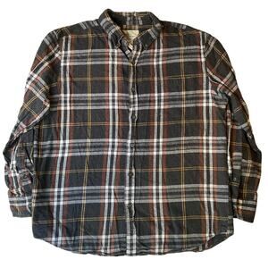 St. John's Bay Men Shirt size XL Long Sleeve Button Down Cotton Plaid Gray & Red