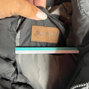 This St John's Bay puffer vest is designed for warmth and style. The black color and hood make it versatile for various weather conditions. Ideal for layering, it combines comfort with functionality.