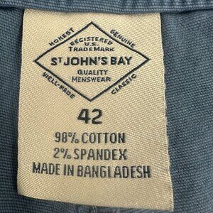 These St. John's Bay shorts in size 42 offer a relaxed fit for comfort and style. Crafted with a cotton-spandex blend, they ensure durability and flexibility. The blue color adds a touch of sophistication, making them suitable for casual outings or leisurely activities.