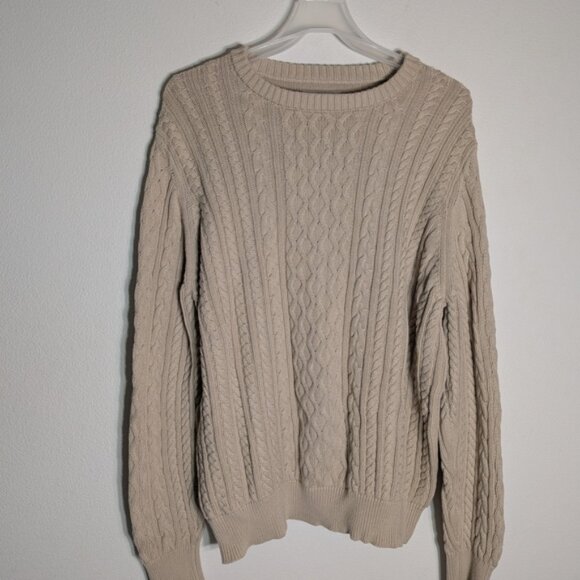 St Johns Bay Mens Fishermans Sweater Cable Knit Cotton Cream Chunky Grandpa XXL