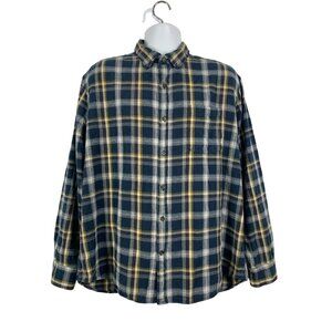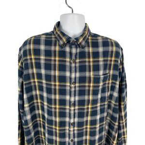St. John's Bay Mens Flannel Shirt Blue Plaid Button-Down Long Sleeve Size XL