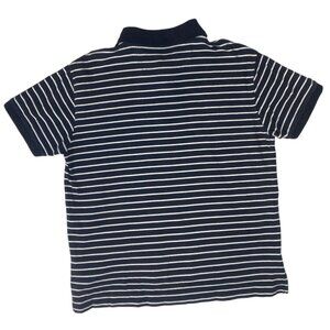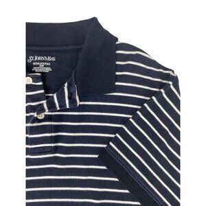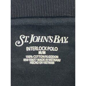 Experience superior comfort with the St. John's Bay Men's Interlock Polo Shirt in size M. This black and white striped polo is made from 100% cotton, offering both style and durability.