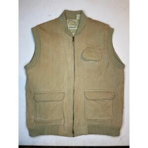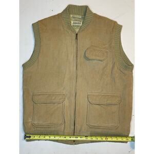 St. John’s Bay Mens L Corduroy Utility Vest Tan Zip Front Quilted Lined Workwear