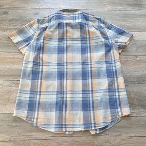 This St. John's Bay Men's L Short Sleeve Shirt is perfect for a casual outing. Featuring a relaxed fit and a plaid pattern, this shirt is perfect for the beach, vacation, or any resort. It is made of cotton for a comfortable feel and is available in blue and orange. This shirt is sure to make a statement and is perfect for any casual occasion.
