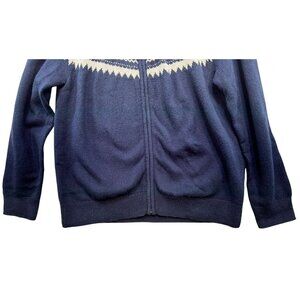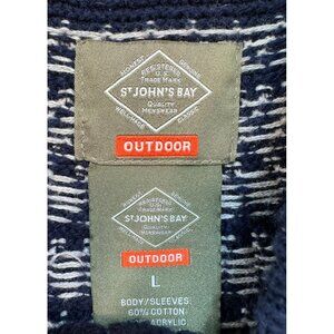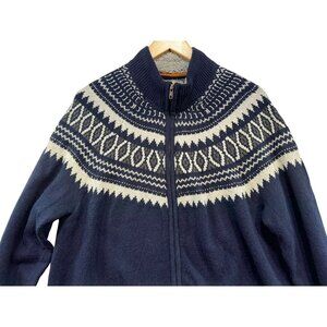 St. Johns Bay Mens Outdoor Fair Isle Full Zip Cardigan Sweater L Navy & White
