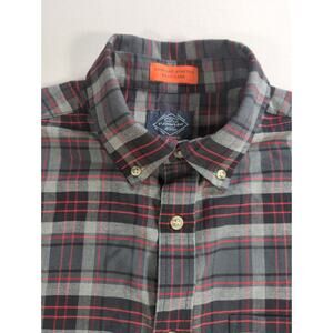 St Johns Bay Mens Plaid Button Down Shirt Gray Red Long Sleeve Size S