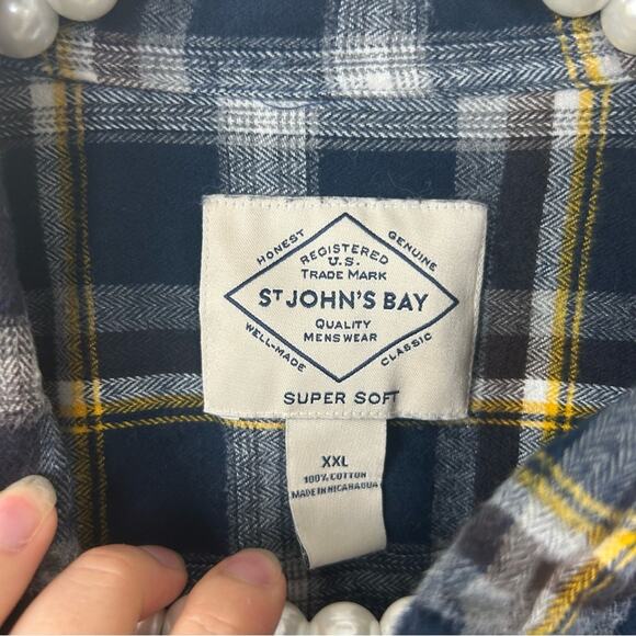 Good pre worn condition. Men’s St. John’s Bay super soft 100% cotton plaid flannel button down shirt. Size XXL. Front chest pocket. All sales final.