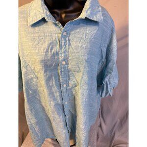 St Johns Bay Mens Short Sleeve Linen Blend Blue Button Up Size 3XL Big Tall