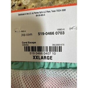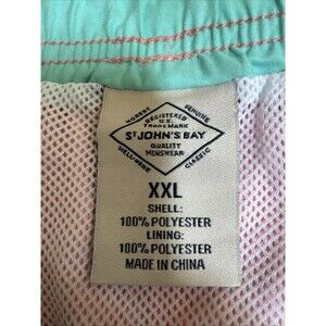 Elevate your beach day style with these St. John's Bay Men's Swim Shorts in a vibrant coral hue. The wave pattern and blue and coral character prints make these shorts a perfect addition to your swimwear collection. These shorts come in size 2XL and are made of 100% polyester blended fabric, with a polyester lining material for added comfort.