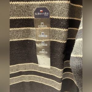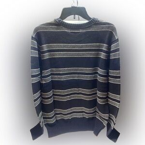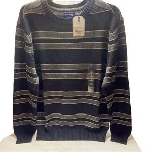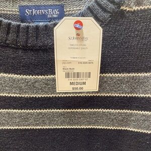 St John’s Bay Men’s pull over sweater NWT Medium Navy and Gray striped