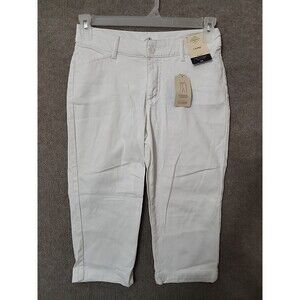 St Johns Bay Mid Rise Capri Pants Womens 4 White Slimming Stretch Beach NEW