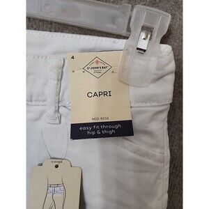 St Johns Bay Mid Rise Capri Pants Womens 4 White Slimming Stretch Beach NEW Please check measurements below before purchasing. WAIST LAID FLAT 14" LEG OPENING 7" RISE 9" INSEAM 18"