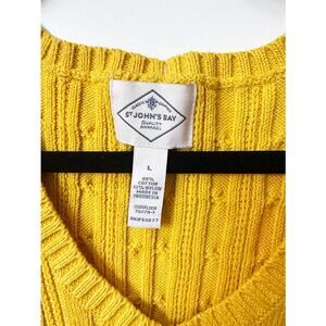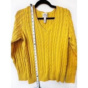 St. John's Bay Mustard Yellow V Neck Cable Knit Pullover Sweater (L)