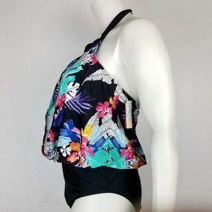 St Johns Bay Women's One Piece Swimsuit Black Floral Plus Size 16
