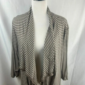 St John's Bay Open Cardigan Sweater Women Plus 3X Brown White Stripe Lightweight