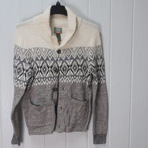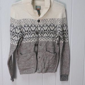St. John's Bay Outdoor Ivory Brown Gray Fair Isle Sweater Mens Sz Small Cardigan