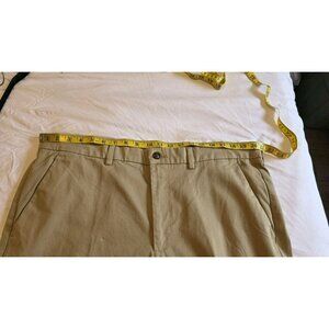 These pants are designed with convenience in mind, featuring an easy-care fabric blend that withstands the rigors of daily wear. They are machine washable, ensuring they remain looking sharp with minimal effort. Equipped with both button and zip closures for a secure fit, they're perfect for a variety of occasions, from casual outings to business settings and travel. Msrp $48