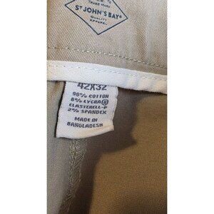 St John's Bay Pants Mens Size 42Wx32L Beige Khaki Stretch Lycra Chino Pants NWT