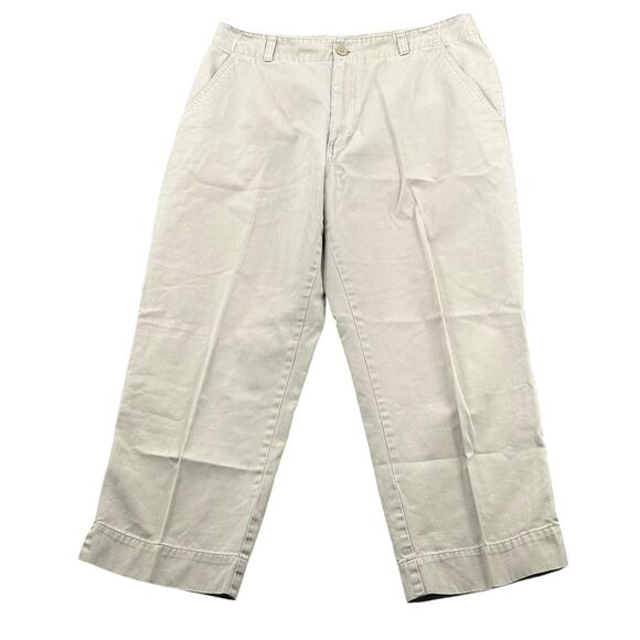 St Johns Bay Pants Womens 12 Beige Khaki Chino Slim Tapered Crop 100% Cotton