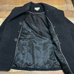 St Johns Bay Pea Coat Womens Medium Gray Double Breasted Cashmere Wool Blend
