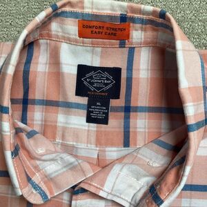 St. John's Bay Peach Plaid Button Down Shirt XL Comfort Stretch Easy Care