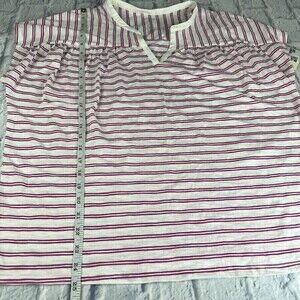 St Johns Bay Petite Large PL Pink Stripe Cap Sleeve V-Neck Pullover Shirt NEW