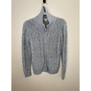 St. Johns Bay Petite Womens Gray Cable Knit Full-Zip Cardigan Sweater Size PL