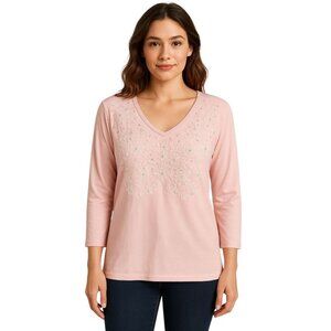St John's Bay Pink Shirt Top Embellished Long Sleeve
