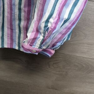 This relaxed blouse from St. John's Bay features a charming mix of pink and purple stripes, offering a soft and airy feel. The long sleeves and buttoned design add a touch of elegance to its casual style, making it perfect for everyday wear.