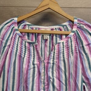 St. John's Bay Pink Vertical Striped Blouse Womens Size XL