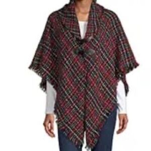 St. John’s Bay Plaid Fringe Toggle Button Poncho One Size