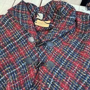 St. John’s Bay Plaid Fringe Toggle Button Poncho One Size