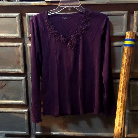 NWOT St John's Bay Tshirt. Size Large, Color: Purple. Approximate flat lay measurements: armpit to armpit 21 inches. NonSmoking home