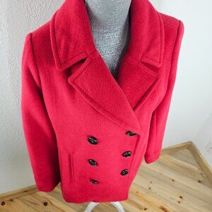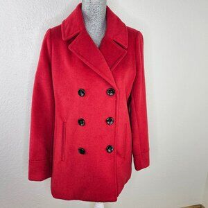 St Johns Bay Red Cashmere Wool Blend Pea Coat