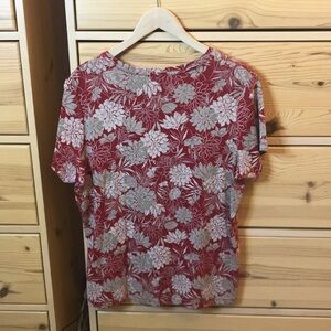 St. Johns Bay Red Floral Print T-Shirt Blouse Crewneck Size XL
