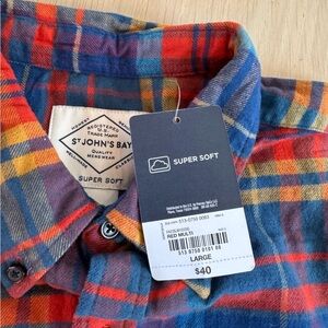 St. John’s Bay Red Multi Color Long Sleeve Casual Button Down Shirt Flannel Plaid Size Large NWT