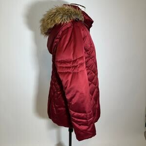 St. Johns Bay Red Quilted Puffer Down Jacket Coat Faux Fur Trim Womens Large L