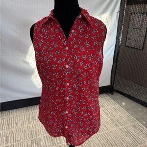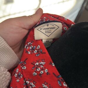 This elegant St. John's Bay blouse showcases a vibrant red hue complemented by a subtle white pattern, perfect for casual occasions. Crafted with lightweight fabric, it offers comfort and style, making it an ideal choice for warm-weather wear. The classic blouse design ensures a timeless appeal.