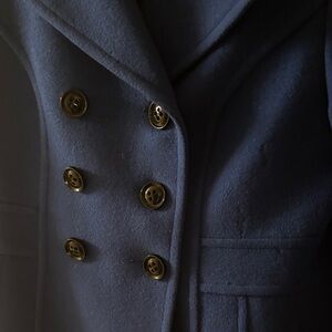 Chic and timeless pea coat. Double-breasted with classic buttons. Great color, lovely with jeans and a sweater or dressed up for the office!