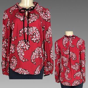 ITEM: St. John's Bay S Red Floral Tie Keyhole Neckline Curved Hem Long Sleeve Blouse