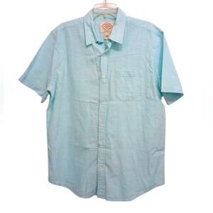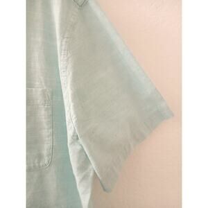 St John's Bay Shirt Cotton Linen Sz L Classic Fit Aqua Blue Short Sleeve Travel