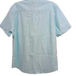 St John's Bay Shirt Cotton Linen Sz L Classic Fit Aqua Blue Short Sleeve Summer Travel Vacation Button Cool Relaxed