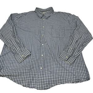 St Johns Bay Shirt Men XXL Blue White Brown Cotton Checkered Plaid Button Up
