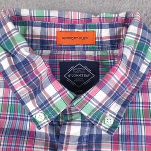St Johns Bay Shirt Mens Large Colorful Plaid Button Down Comfort Flex