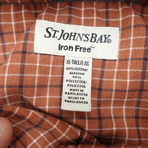 St. John's Bay Shirt Men's XL Tall Orange Plaid Cotton Iron Free Button-Down.