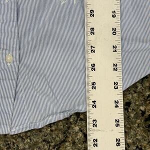 St Johns Bay Shirt Size M Blue White Floral Striped Embroidery Button Up Coastal