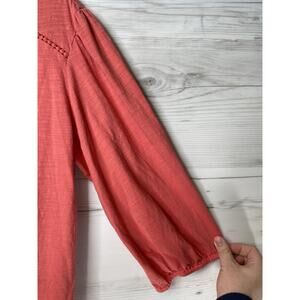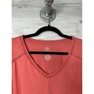 St John's Bay Shirt Womens 2XL Red V Neck 3/4 Sleeve Pullover Boho Crochet Trim